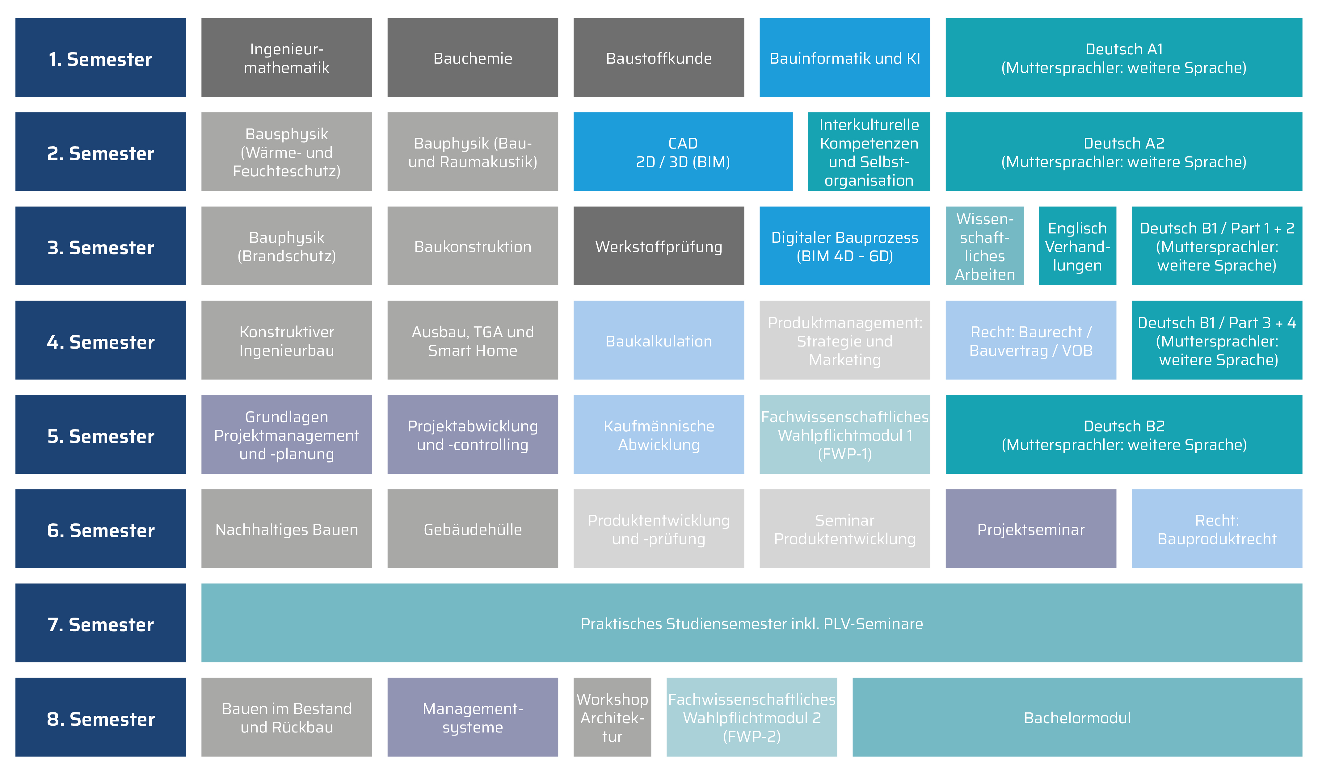 Dieser innovative Studiengang wurde auf Initiative unserer zahlreichen Industrie- und Wirtschaftspartner entwickelt. Um den heutigen Herausforderungen im Bauwesen bestmöglich zu begegnen, bilden wir Ingenieurinnen und Ingenieure mit dem Fokus auf Entwicklung, Management und Marketing von Bauprodukten und Bauprozessen aus: