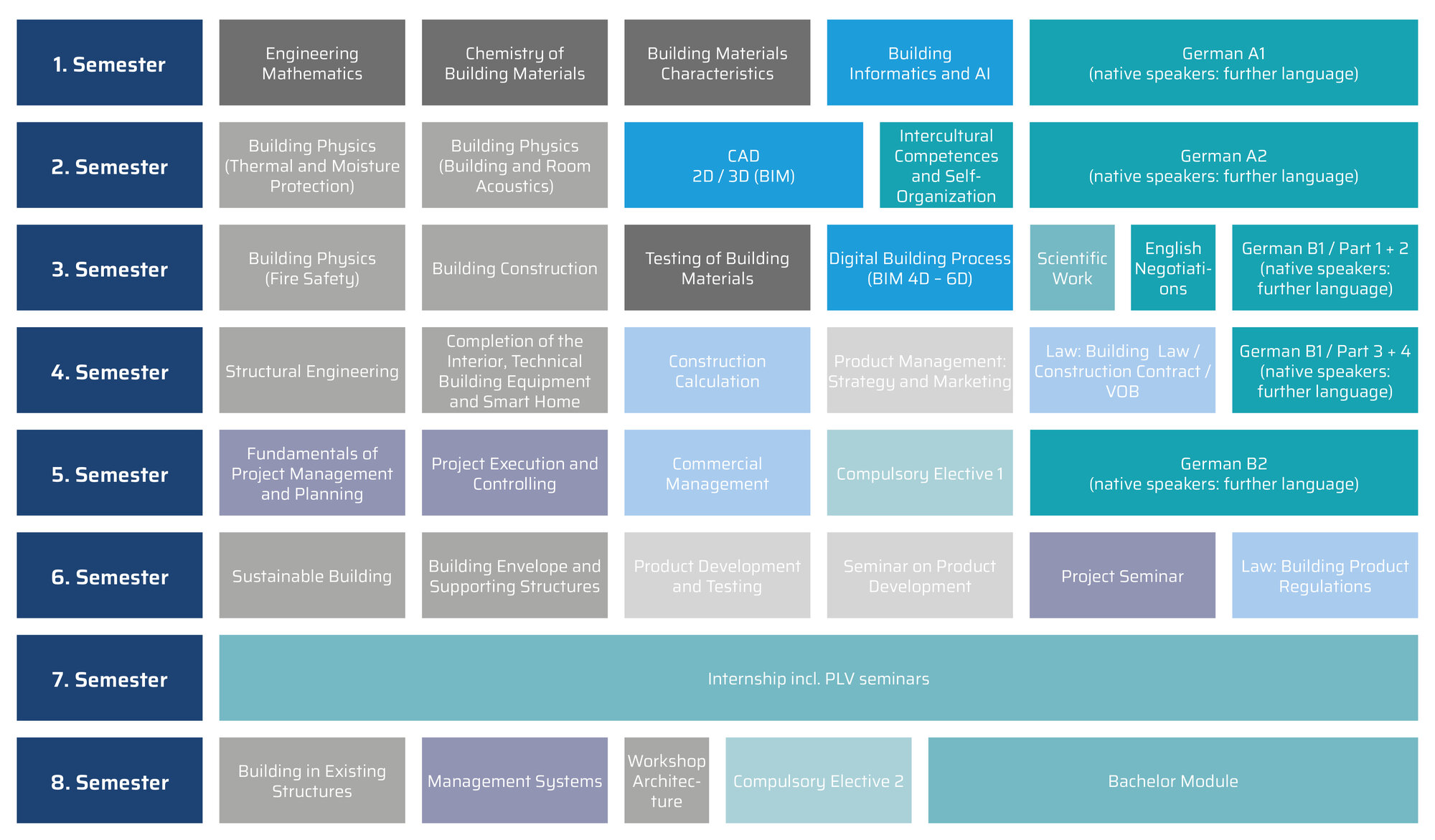 As a BPP engineer, you must therefore be proficient in English and German, and we have already taken this into account in our Building Products and Processes degree program: