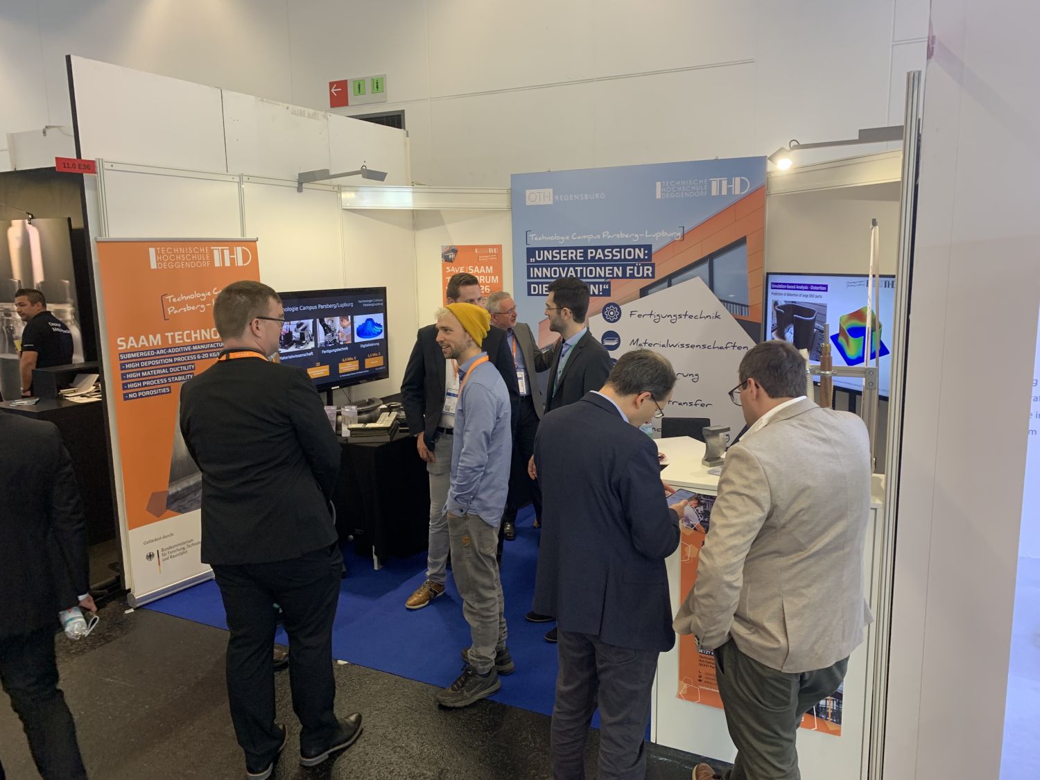 Während bei der Messe im Bereich der Metallverarbeitung Verfahren im Mikrometerbereich dominieren, setzt der TC Parsberg-Lupburg mit SAAM ein besonderes Highlight im Großbauteilsegment. Das Verfahren ermöglicht die Fertigung von Bauteilen mit einer Auftragsrate von 20 Kilogramm pro Stunde. Ein 1.000-Kilogramm-Bauteil lässt sich damit in lediglich 50 Stunden – also rund zwei Tagen – herstellen. „Eine echte Innovation, die auf einer über Jahrzehnte bewährten Technologie basiert“, betont Prof. Dr.-Ing. Anton Schmailzl, wissenschaftlicher Leiter des Technologie Campus. SAAM nutzt das Unterpulverschweißen, das besonders im Druckbehälterbau und in der Kernkrafttechnik für sicherheitsrelevante Bauteile eingesetzt wird.