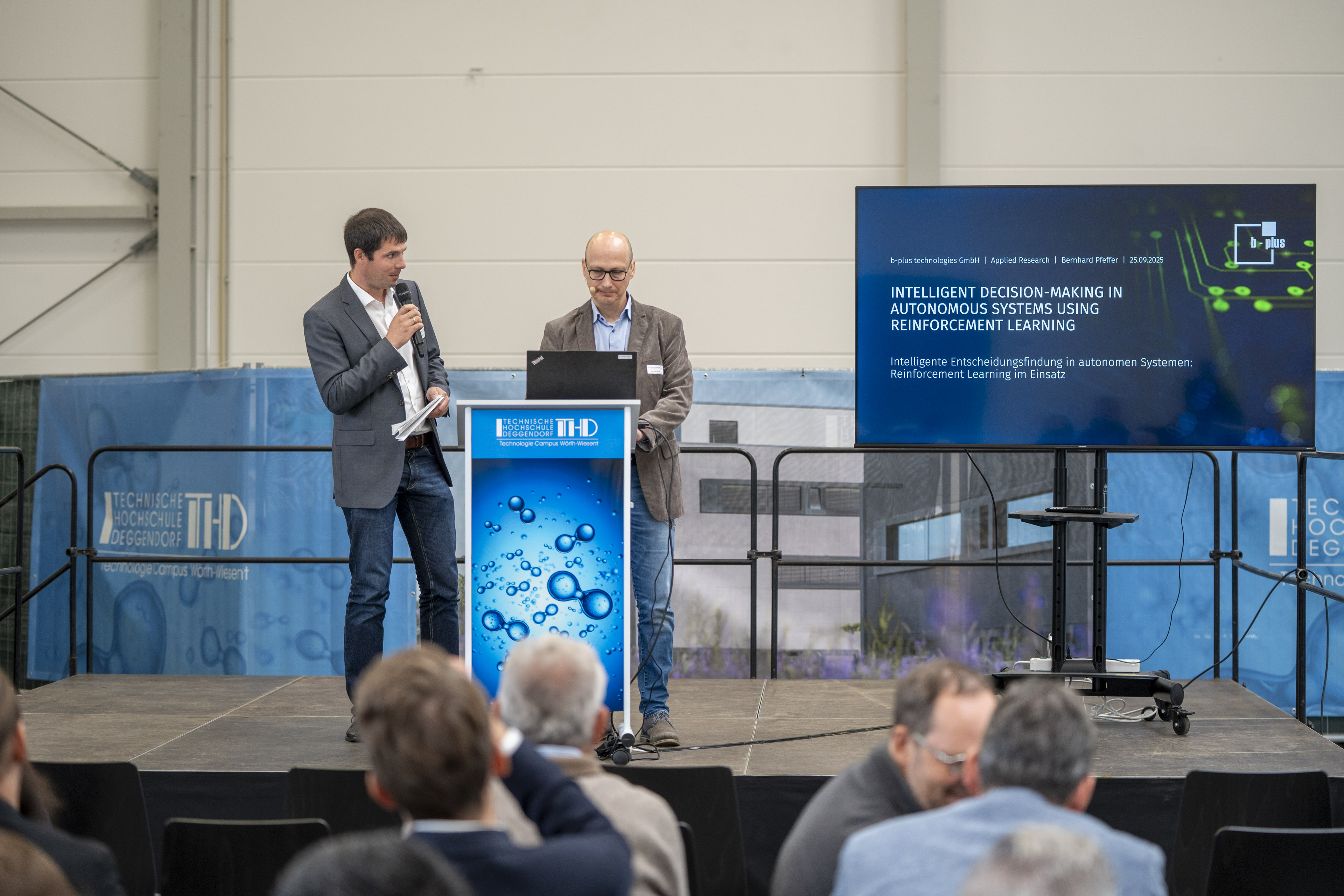 Prof. Dr.-Ing. Danny Wauri (TC Wörth-Wiesent) gab einen Ausblick auf vernetzte, autonome und nachhaltige Mobilitätskonzepte, während M.Sc. Jonat Ott (TC Wörth-Wiesent) eine detaillierte Analyse der Kostenstrukturen lokaler Wasserstofferzeugung aus Photovoltaik in hocheffizienten Gleichstromnetzen präsentierte.