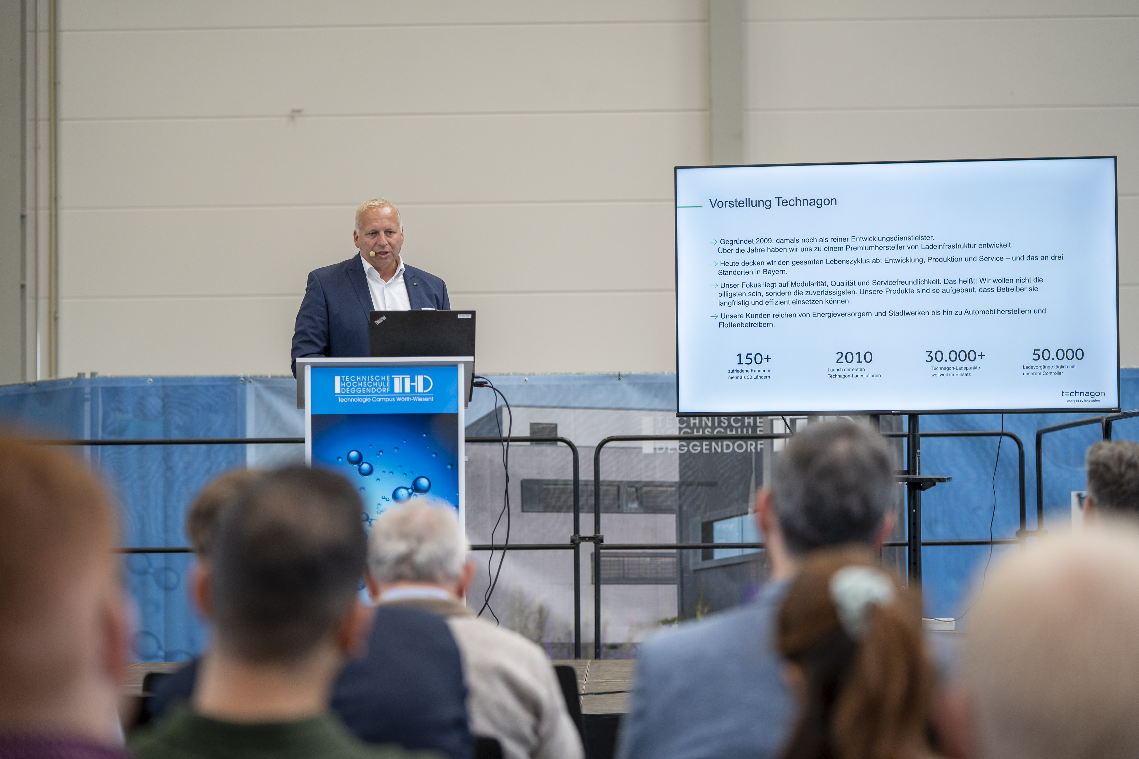 Manuel Pledl (Technagon GmbH) zeigte praxisnah die aktuellen Herausforderungen und Lösungsansätze im Ladesäulenmarkt, und Benjamin Kuppler (Siemens AG) stellte die Partnerschaft für Performance durch die Siemens Depot360 Services und die Zusammenarbeit mit der THD im Bereich Hardwarevalidierung vor.