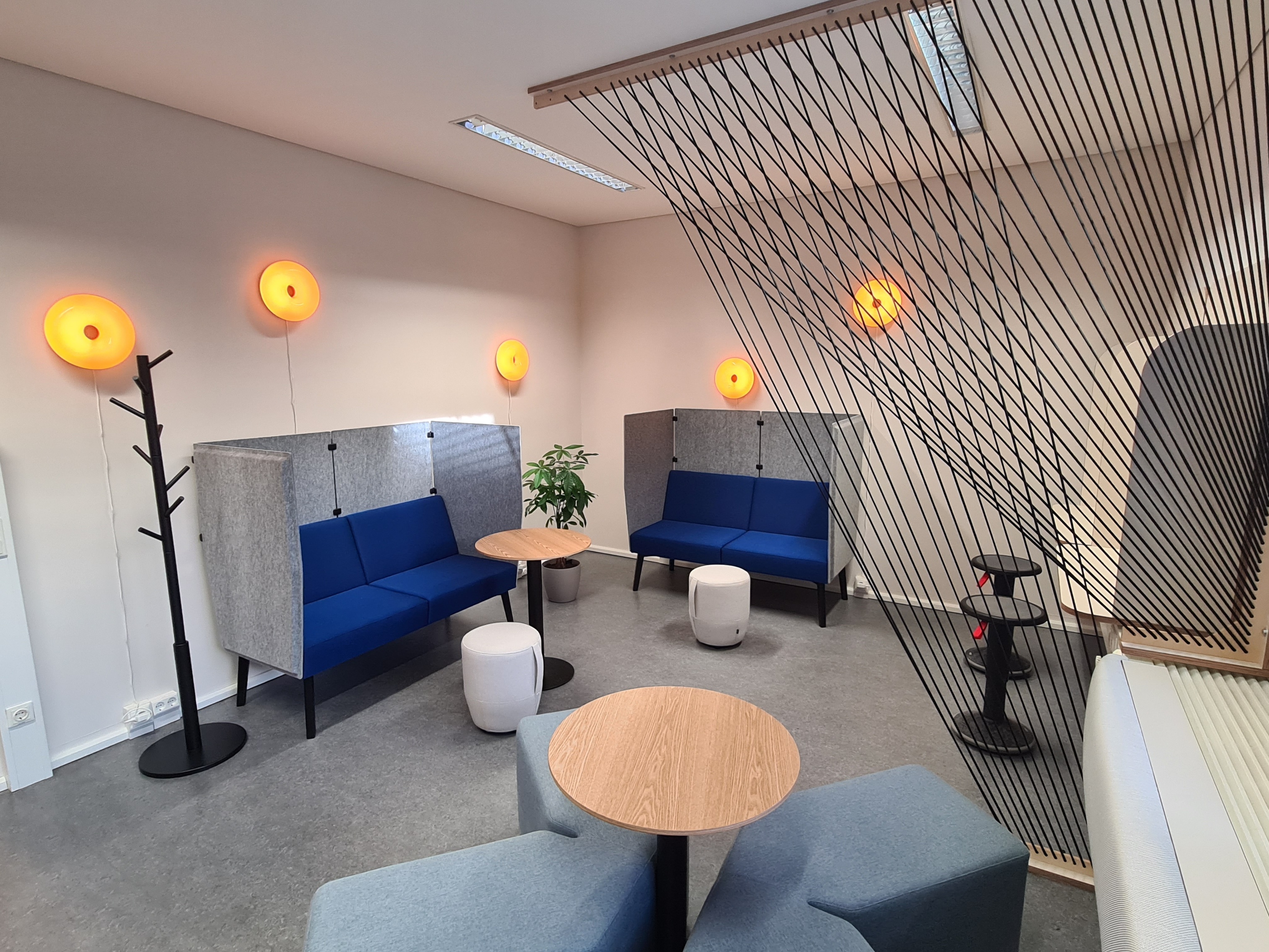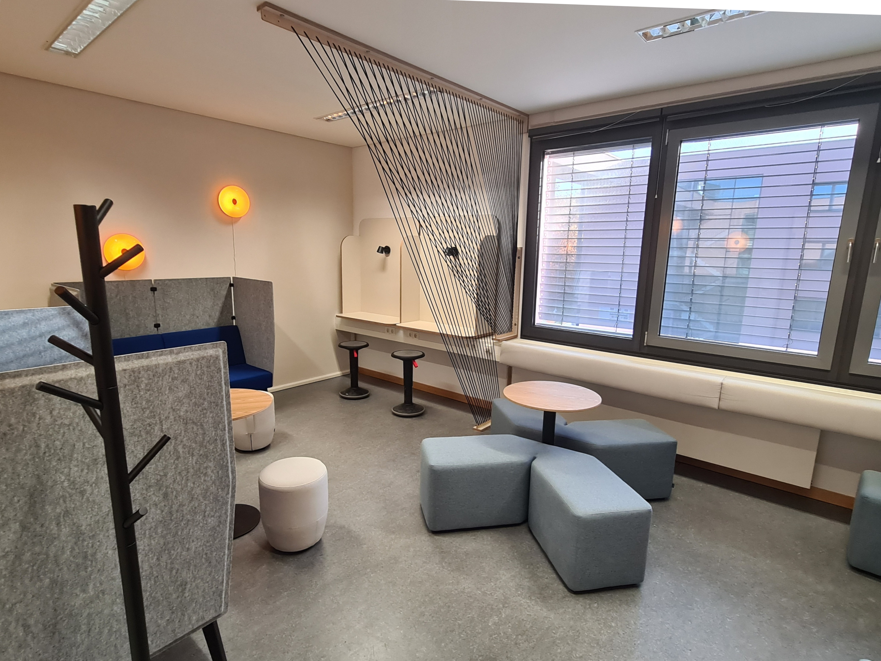 An den fest installierten PC-Arbeitsplätzen sind zusätzlich gut erreichbare Steckdosen in ausreichender Zahl für die Stromversorgung von privaten Notebooks installiert.
