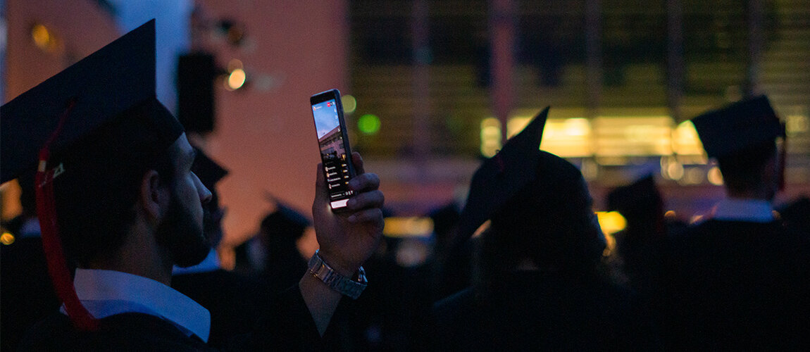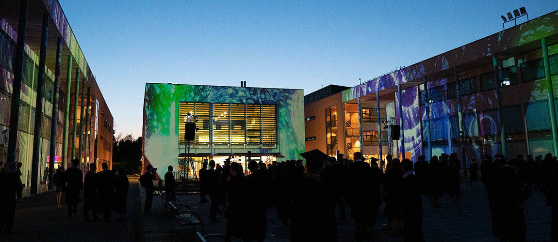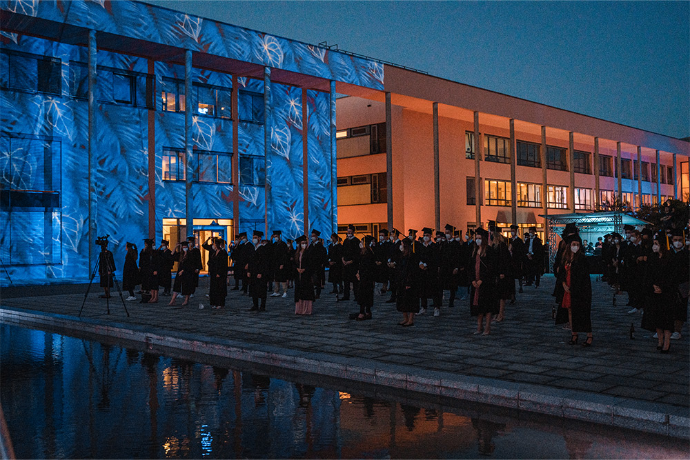 Die Graduiertenfeier 2020 war eine besondere Premiere an der TH Deggendorf. Die Masterklasse des Studiengangs Medienproduktion konnte die Hochschulleitung mithilfe einer Umfrage und eines Ideen-Pitches von einem neuen Veranstaltungsformat überzeugen. Die bisherige Verabschiedung der Absolventen erfolgte im Rahmen des Dies Academicus, dessen Fokus auf der Leistung der Hochschule im Bereich Lehre und Forschung lag. 2020 standen zum ersten Mal in der 25-jährigen Geschichte der Hochschule die Absolventinnen und Absolventen im Mittelpunkt des Konzepts. Und zum ersten Mal wurden Dramaturgie und Eventdesign von Studierenden konzipiert, entworfen und umgesetzt.
