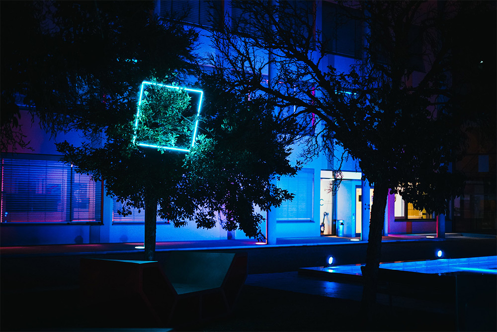 "Oft können wir den Stress, der täglich auf uns einprasselt nicht selbst steuern. Umso wichtiger ist daher, mit dem Stress umzugehen. Innere Ruhe, eine gewisse Ausgeglichenheit und Gelassenheit helfen dabei, den Stress nicht überhand nehmen zu lassen. Die Interaktion hilft den Nutzern im oft konstanten Stress zu Ruhe zu kommen und auch mal stehen zu bleiben und seine Gedanken zu verarbeiten. Tagtäglich wird unser Gehirn mit 11 Millionen Reize pro Sekunde überflutet. Dieser Reizüberflutung und dem damit einhergehenden Stress, wollen wir entgegenwirken. Ziel der Interaktion ist runterzukommen. Der Mensch braucht hin und wieder eine Pause. Er selbst wird dadurch ruhiger und wird gelassener."