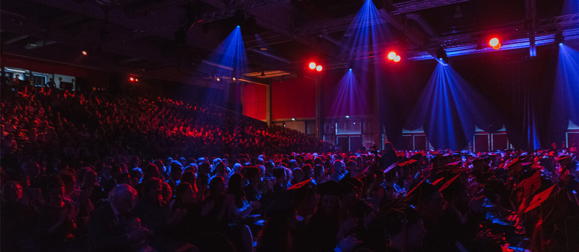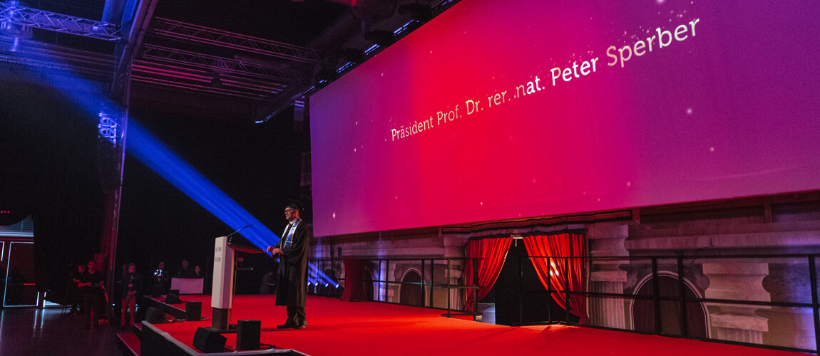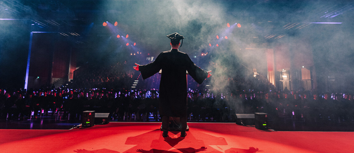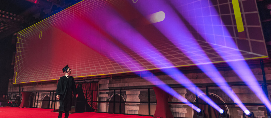 Das Ziel der Idee: Die Graduierten sollten das Hochgefühl einer Award Show erleben. Dazu erhielt jeder seinen individuellen „Moment of Fame“ auf einer 25 Meter breiten Bühne. Individuelle Animationsfilme spiegelten die Fakultät sowie die Themen des Studiengangs wider und begleiteten den Gang eines jeden Graduierten. Als dramaturgische Unterbrechung spielten die Studierenden akustisches Pong mit den 1.500 Gästen. Das Spiel wurde visuell sowie technisch von Studierenden der Medientechnik designt und moderiert. Als Höhepunkt der Veranstaltung wurde das Hütewerfen emotional inszeniert. Die Graduierten drehten sich dafür zum Publikum und sahen in die Augen der Menschen, die sie auf das Event und durch ihr Studium begleitet haben. Ein Countdown, Sound- und Lichteffekte unterstützten diesen einzigartigen und finalen Augenblick.