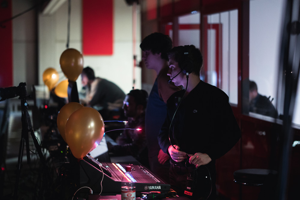 Zu Semesterbeginn wählen die Studierenden ihre Aufgabenbereiche, wobei zwischen Redaktions- und Technikteam unterschieden wird. Die Redaktion kümmert sich um Inhalt, Konzeption und Planung der Sendung, erstellt den Ablaufplan, produziert die Einspielfilme, organisiert Gäste und Bands, entwirft und produziert alle graphischen Publikationen (Plakat, Flyer, Webseite) und pflegt die Sozial-Media-Kanäle. Das Technikteam arbeitet sich ins Equipment des Medienateliers ein, das mit Kamerakran, Schienen-Dolly, Lichtdecke, Surround-Sound und Regie-Suite als TV-Studio komplett ausgestattet ist. In den Proben zu den Sendungen wird die Abstimmung zwischen den einzelnen Gewerken kontinuierlich verfeinert. |